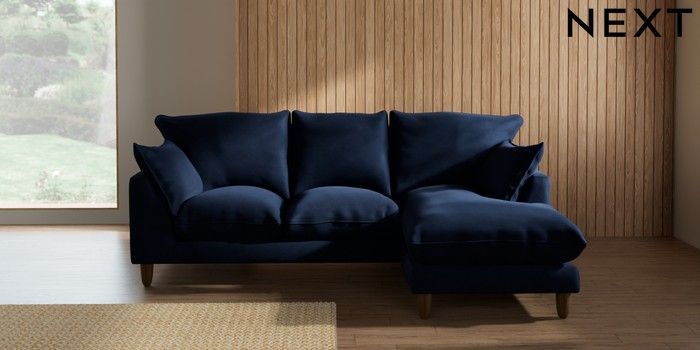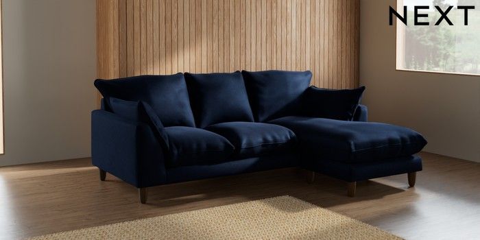 7.2.10 Noa Deep Relaxed Sit Small Sofa Chaise - Universal Luxe Chenille Navy Blue High Leg - Mid | Made Click here to use our website with more accessibility support, for example screen readers
