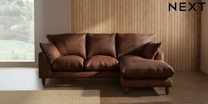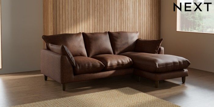 7.2.10 Noa Deep Relaxed Sit Small Sofa Chaise - Universal Monza Faux Leather Easy Clean Chestnut Brown High Leg - Mid | Made Click here to use our website with more accessibility support, for example screen readers