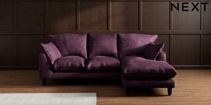 7.2.10 Noa Deep Relaxed Sit Small Sofa Chaise - Universal Plush Chenille Dark Plum Purple High Leg - Dark | Made Click here to use our website with more accessibility support, for example screen readers
