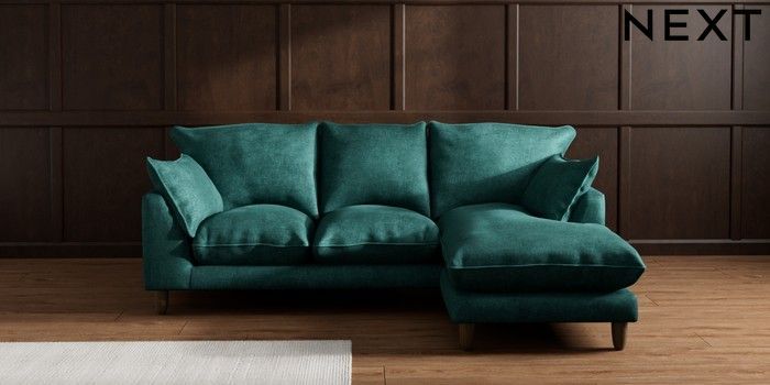 7.2.10 Noa Deep Relaxed Sit Small Sofa Chaise - Universal Plush Chenille Dark Teal Green High Leg - Mid | Made Click here to use our website with more accessibility support, for example screen readers