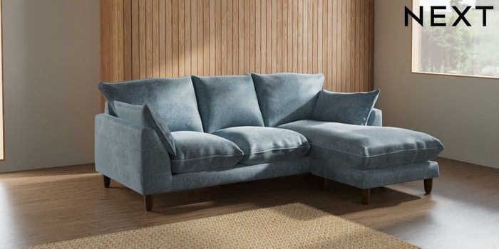 7.2.10 Noa Deep Relaxed Sit Small Sofa Chaise - Universal Plush Chenille Light Blue High Leg - Mid | Made Click here to use our website with more accessibility support, for example screen readers
