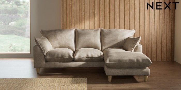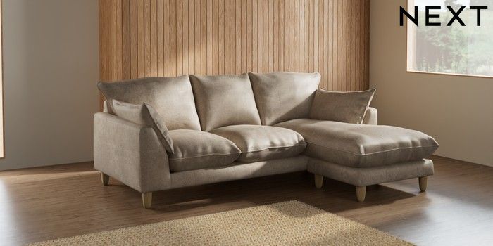 7.2.10 Noa Deep Relaxed Sit Small Sofa Chaise - Universal Plush Chenille Light Natural High Leg - Light | Made Click here to use our website with more accessibility support, for example screen readers