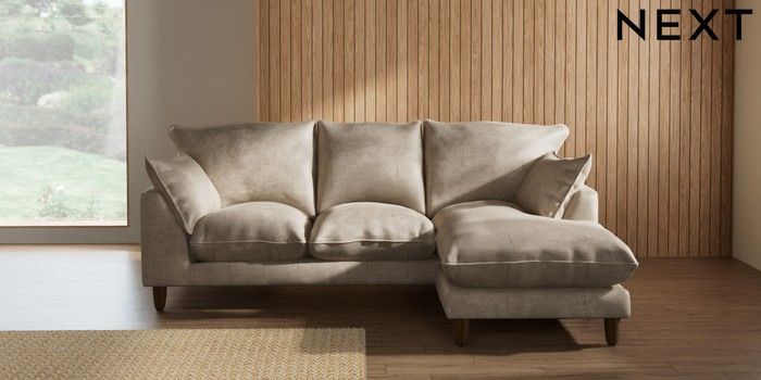 7.2.10 Noa Deep Relaxed Sit Small Sofa Chaise - Universal Plush Chenille Light Natural High Leg - Mid | Made Click here to use our website with more accessibility support, for example screen readers