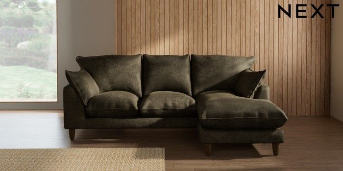 7.2.10 Noa Deep Relaxed Sit Small Sofa Chaise - Universal Plush Chenille Moss Green High Leg - Mid | Made Click here to use our website with more accessibility support, for example screen readers