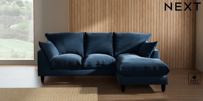 7.2.10 Noa Deep Relaxed Sit Small Sofa Chaise - Universal Plush Velvet Easy Clean Airforce Blue High Leg - Dark | Made Click here to use our website with more accessibility support, for example screen readers