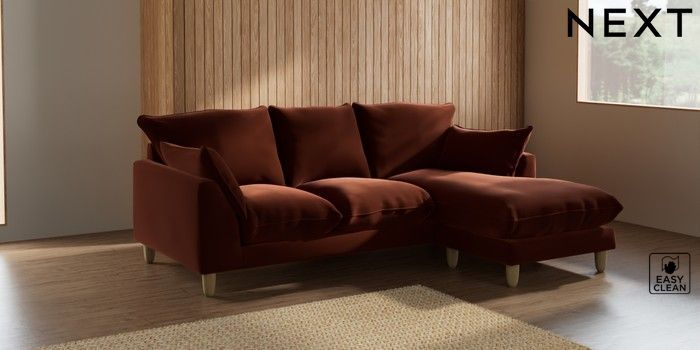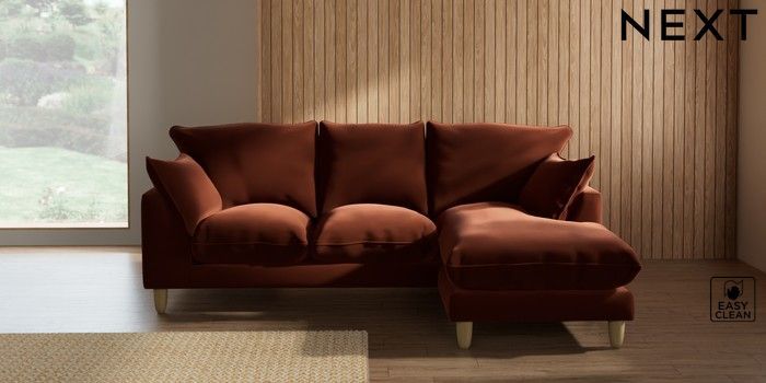 7.2.10 Noa Deep Relaxed Sit Small Sofa Chaise - Universal Plush Velvet Easy Clean Ginger Orange High Leg - Light | Made Click here to use our website with more accessibility support, for example screen readers