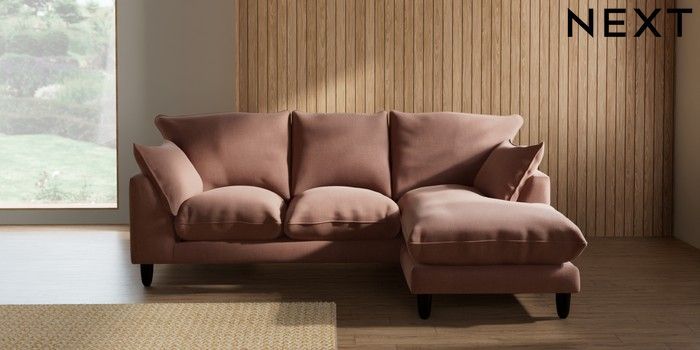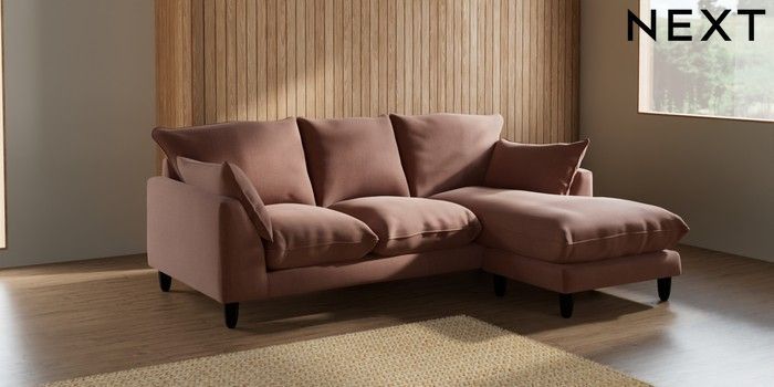 7.2.10 Noa Deep Relaxed Sit Small Sofa Chaise - Universal Relaxed Linen Look Light Rust Brown High Leg - Dark | Made Click here to use our website with more accessibility support, for example screen readers