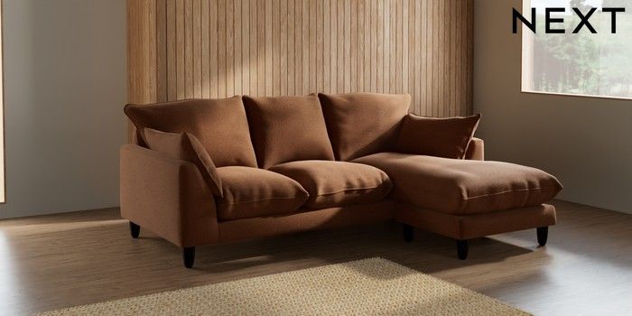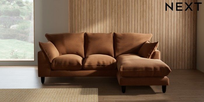 7.2.10 Noa Deep Relaxed Sit Small Sofa Chaise - Universal Ripple Chenille Mid Rust Brown High Leg - Dark | Made Click here to use our website with more accessibility support, for example screen readers