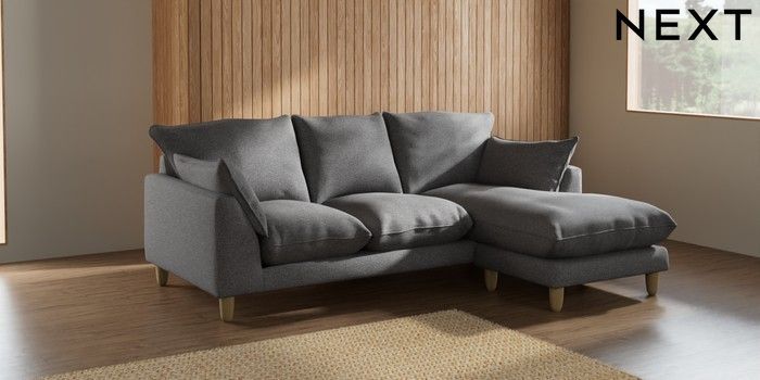7.2.10 Noa Deep Relaxed Sit Small Sofa Chaise - Universal Studio Chenille Mid Grey High Leg - Light | Made Click here to use our website with more accessibility support, for example screen readers