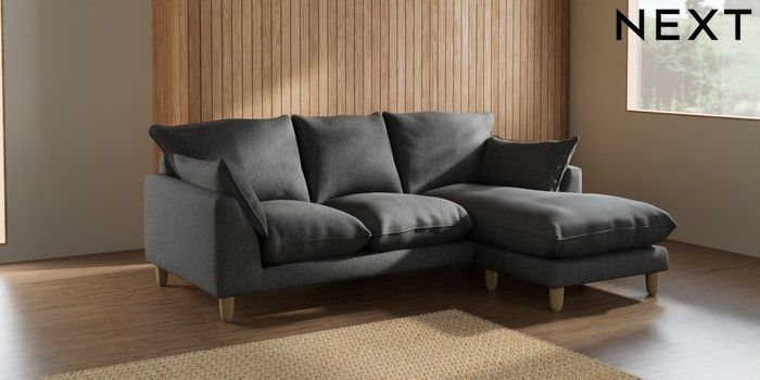 7.2.10 Noa Deep Relaxed Sit Small Sofa Chaise - Universal Tweedy Chenille Dark Grey High Leg - Light | Made Click here to use our website with more accessibility support, for example screen readers