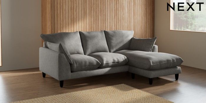 7.2.10 Noa Deep Relaxed Sit Small Sofa Chaise - Universal Tweedy Chenille Mid Grey High Leg - Dark | Made Click here to use our website with more accessibility support, for example screen readers