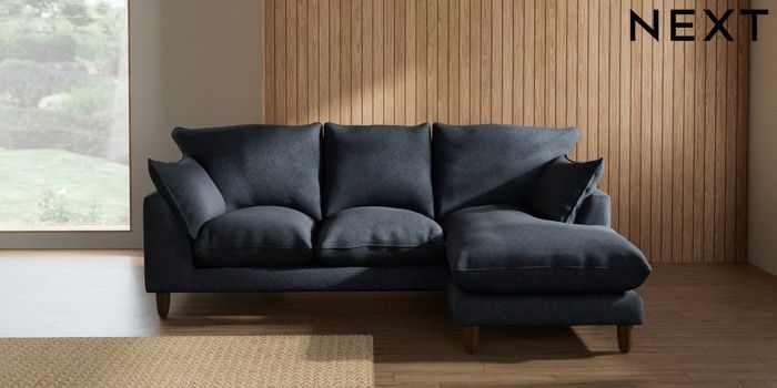 7.2.10 Noa Deep Relaxed Sit Small Sofa Chaise - Universal Tweedy Chenille Navy Blue High Leg - Mid | Made Click here to use our website with more accessibility support, for example screen readers
