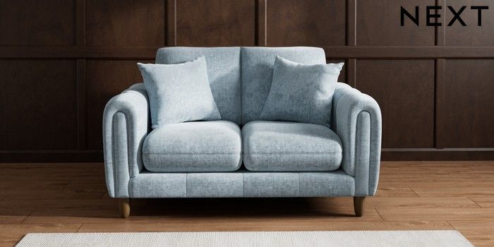 7.2.10 Odella 2 Seater Small Sofa Plush Chenille Light Blue High Leg - Mid | Made Click here to use our website with more accessibility support, for example screen readers