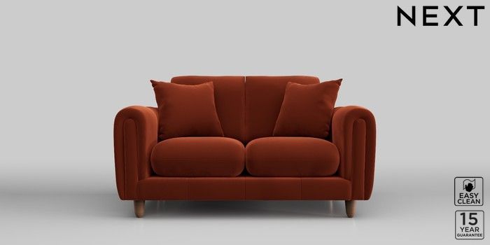 7.2.10 Odella 2 Seater Small Sofa Plush Velvet Easy Clean Ginger Orange High Leg - Mid | Made Click here to use our website with more accessibility support, for example screen readers