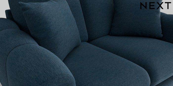 7.2.10 Odella 2 Seater Small Sofa Ripple Chenille Dark Blue High Leg - Light | Made Click here to use our website with more accessibility support, for example screen readers