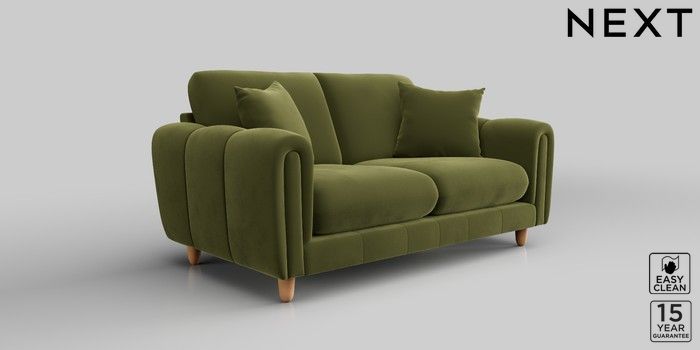7.2.10 Odella 2 Seater Sofa Plush Velvet Easy Clean Mid Olive Green High Leg - Light | Made Click here to use our website with more accessibility support, for example screen readers