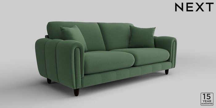 7.2.10 Odella 3 Seater Sofa Relaxed Linen Look Dark Green High Leg - Dark | Made Click here to use our website with more accessibility support, for example screen readers