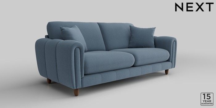 7.2.10 Odella 3 Seater Sofa Relaxed Linen Look Mid Blue High Leg - Mid | Made Click here to use our website with more accessibility support, for example screen readers