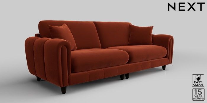 7.2.10 Odella 4 Seater Sofa Plush Velvet Easy Clean Ginger Orange High Leg - Dark | Made Click here to use our website with more accessibility support, for example screen readers