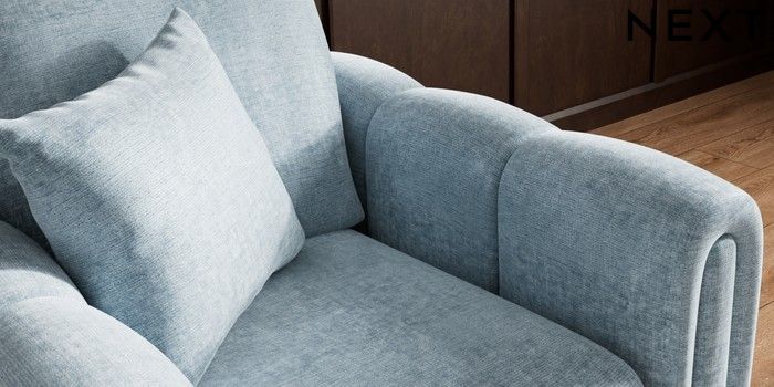 7.2.10 Odella Armchair Plush Chenille Light Blue High Leg - Mid | Made Click here to use our website with more accessibility support, for example screen readers