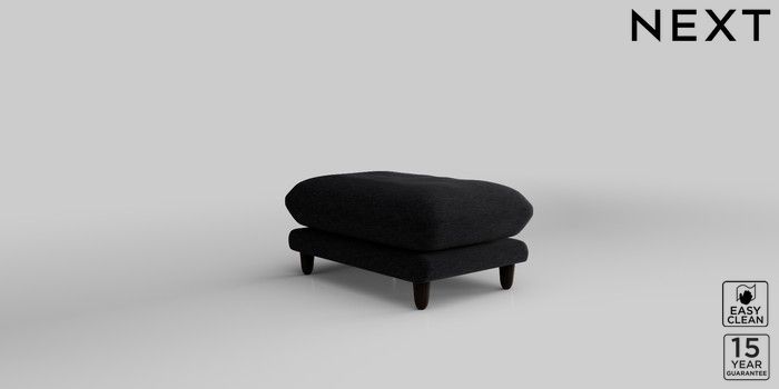 7.2.10 Odella Footstool Fine Chenille Easy Clean Black High Leg - Dark | Made Click here to use our website with more accessibility support, for example screen readers