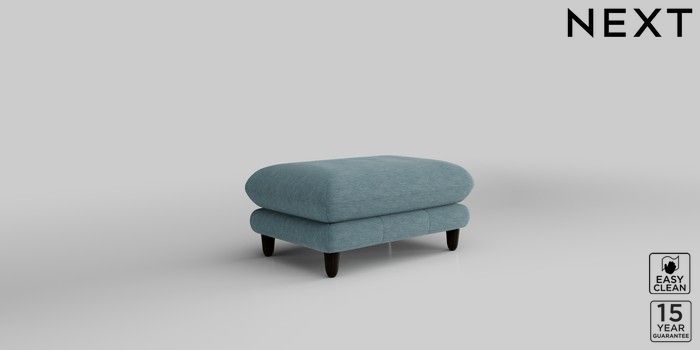 7.2.10 Odella Footstool Fine Chenille Easy Clean Mid Blue High Leg - Dark | Made Click here to use our website with more accessibility support, for example screen readers