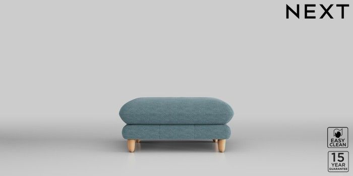7.2.10 Odella Footstool Fine Chenille Easy Clean Mid Blue High Leg - Light | Made Click here to use our website with more accessibility support, for example screen readers