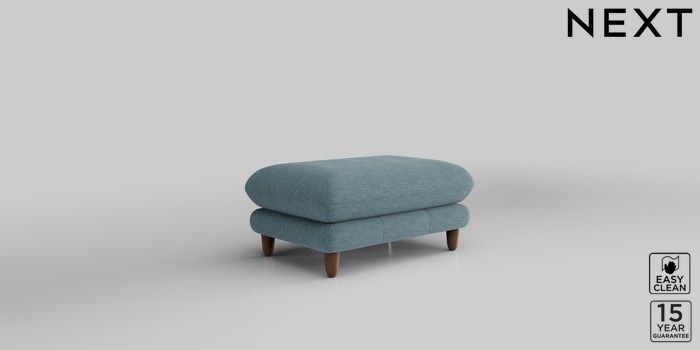 7.2.10 Odella Footstool Fine Chenille Easy Clean Mid Blue High Leg - Mid | Made Click here to use our website with more accessibility support, for example screen readers