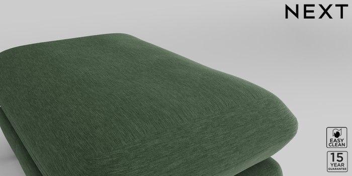7.2.10 Odella Footstool Fine Chenille Easy Clean Mid Khaki Green High Leg - Light | Made Click here to use our website with more accessibility support, for example screen readers