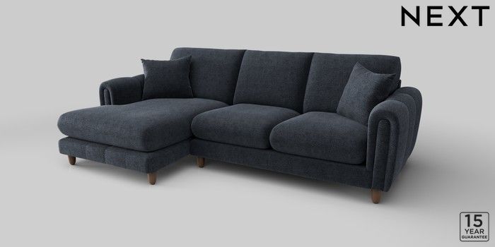 7.2.10 Odella Medium Sofa Chaise - Left Hand Boucle Chenille Dark Slate Blue High Leg - Mid | Made Click here to use our website with more accessibility support, for example screen readers