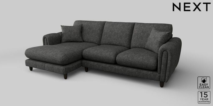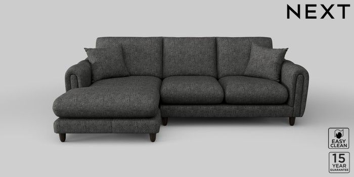 7.2.10 Odella Medium Sofa Chaise - Left Hand Boucle Weave Easy Clean Charcoal Grey High Leg - Dark | Made Click here to use our website with more accessibility support, for example screen readers
