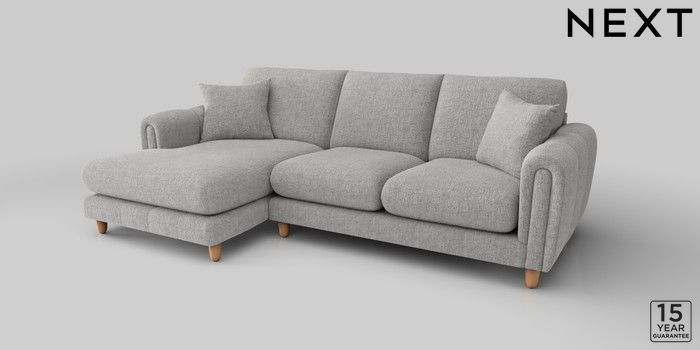 7.2.10 Odella Medium Sofa Chaise - Left Hand Chunky Chenille Light Grey High Leg - Light | Made Click here to use our website with more accessibility support, for example screen readers