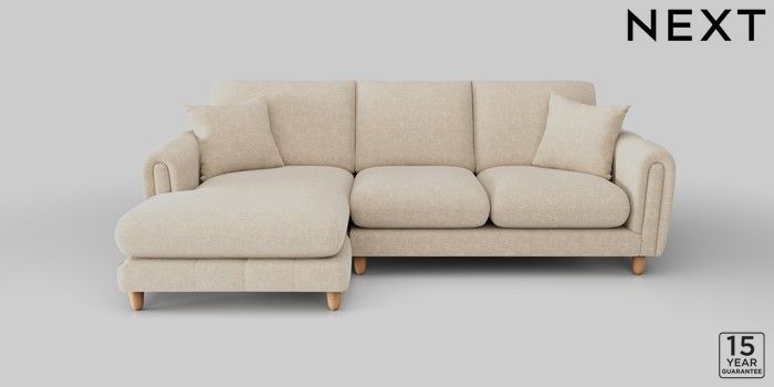 7.2.10 Odella Medium Sofa Chaise - Left Hand Chunky Weave Cream High Leg - Light | Made Click here to use our website with more accessibility support, for example screen readers