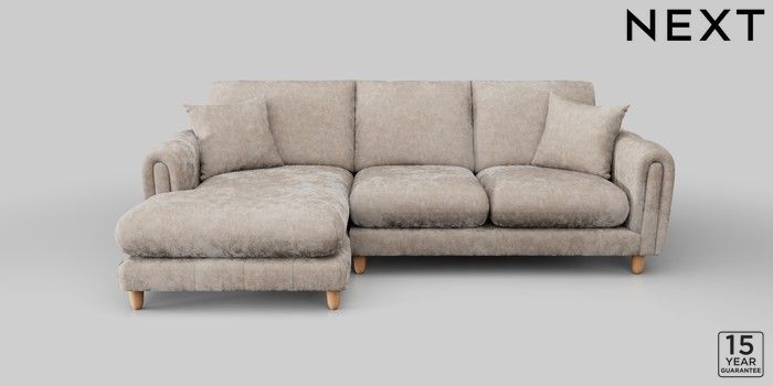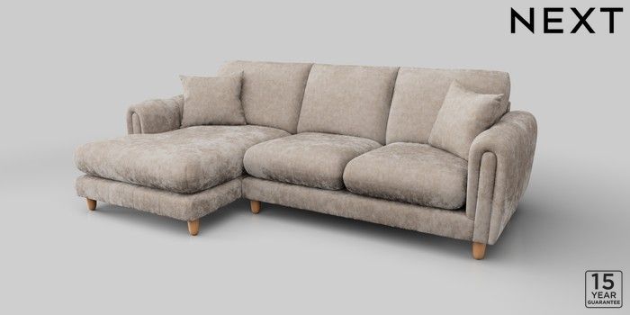 7.2.10 Odella Medium Sofa Chaise - Left Hand Distressed Velour Mid Natural High Leg - Light | Made Click here to use our website with more accessibility support, for example screen readers