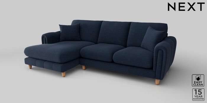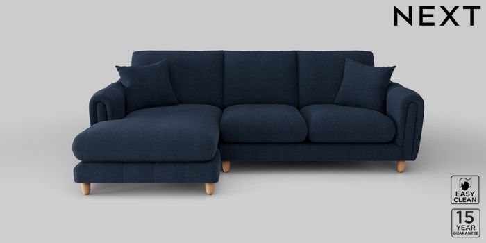 7.2.10 Odella Medium Sofa Chaise - Left Hand Fine Chenille Easy Clean Dark Navy Blue High Leg - Light | Made Click here to use our website with more accessibility support, for example screen readers