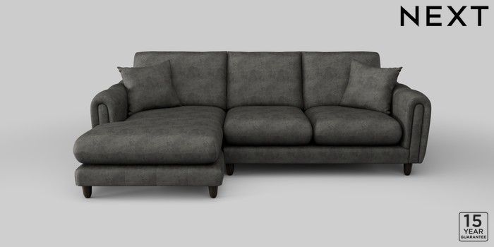 7.2.10 Odella Medium Sofa Chaise - Left Hand Monza Faux Leather Easy Clean Dark Grey High Leg - Dark | Made Click here to use our website with more accessibility support, for example screen readers