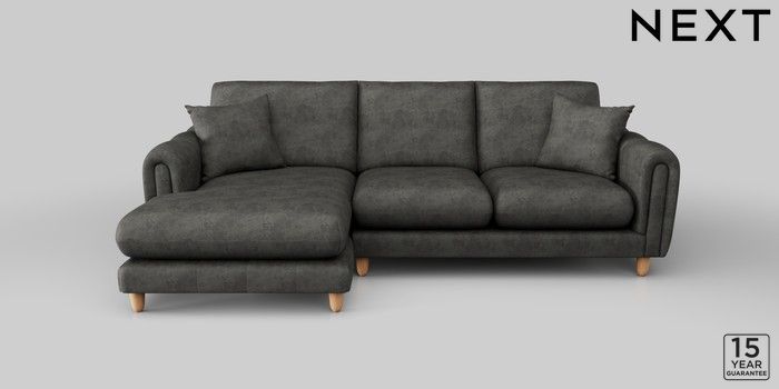 7.2.10 Odella Medium Sofa Chaise - Left Hand Monza Faux Leather Easy Clean Dark Grey High Leg - Light | Made Click here to use our website with more accessibility support, for example screen readers