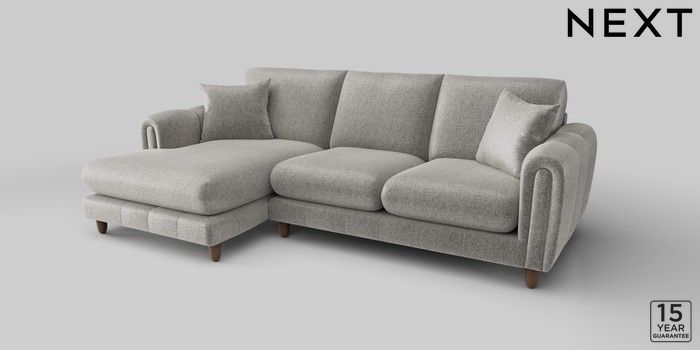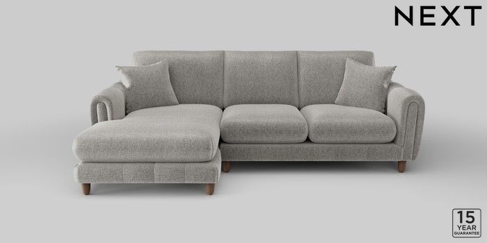 7.2.10 Odella Medium Sofa Chaise - Left Hand Plush Chenille Light Grey High Leg - Mid | Made Click here to use our website with more accessibility support, for example screen readers
