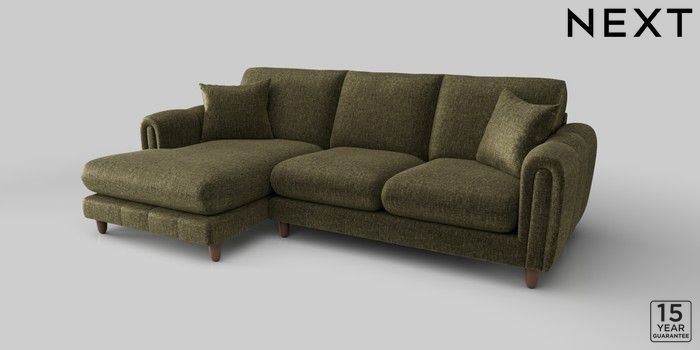 7.2.10 Odella Medium Sofa Chaise - Left Hand Plush Chenille Moss Green High Leg - Mid | Made Click here to use our website with more accessibility support, for example screen readers