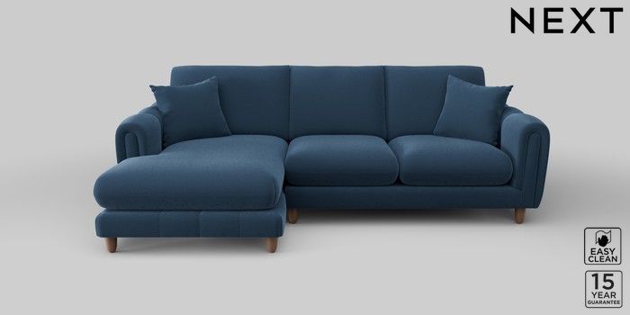 7.2.10 Odella Medium Sofa Chaise - Left Hand Plush Velvet Easy Clean Airforce Blue High Leg - Mid | Made Click here to use our website with more accessibility support, for example screen readers