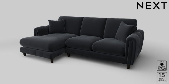 7.2.10 Odella Medium Sofa Chaise - Left Hand Plush Velvet Easy Clean Charcoal Grey High Leg - Dark | Made Click here to use our website with more accessibility support, for example screen readers