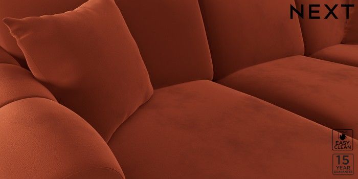 7.2.10 Odella Medium Sofa Chaise - Left Hand Plush Velvet Easy Clean Ginger Orange High Leg - Light | Made Click here to use our website with more accessibility support, for example screen readers