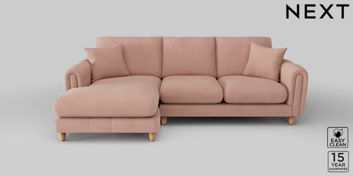 7.2.10 Odella Medium Sofa Chaise - Left Hand Plush Velvet Easy Clean Mid Natural High Leg - Light | Made Click here to use our website with more accessibility support, for example screen readers