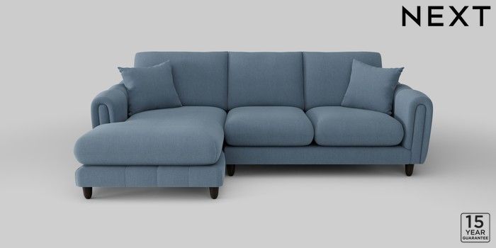 7.2.10 Odella Medium Sofa Chaise - Left Hand Relaxed Linen Look Mid Blue High Leg - Dark | Made Click here to use our website with more accessibility support, for example screen readers
