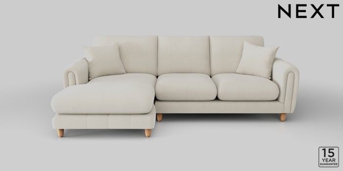 7.2.10 Odella Medium Sofa Chaise - Left Hand Relaxed Linen Look Oyster High Leg - Light | Made Click here to use our website with more accessibility support, for example screen readers