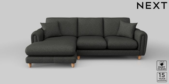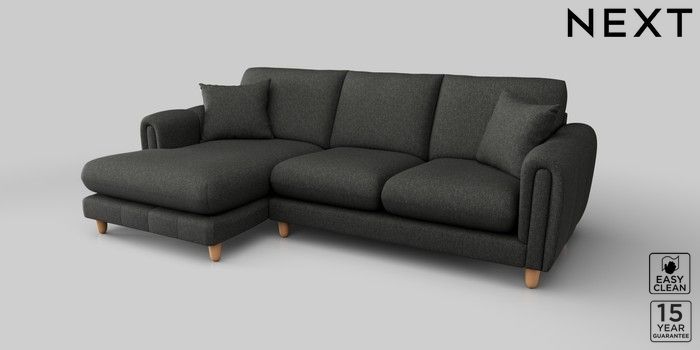 7.2.10 Odella Medium Sofa Chaise - Left Hand Tweedy Blend Easy Clean Charcoal Grey High Leg - Light | Made Click here to use our website with more accessibility support, for example screen readers