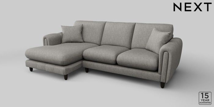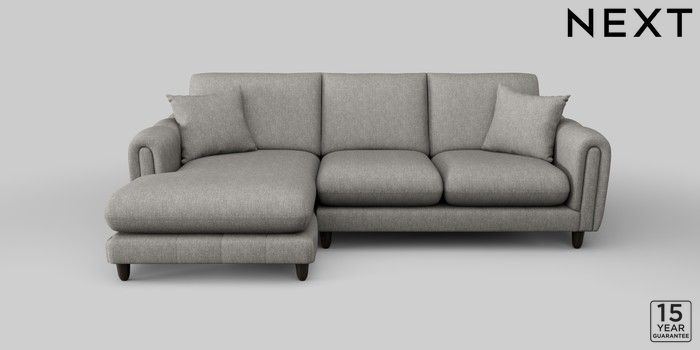 7.2.10 Odella Medium Sofa Chaise - Left Hand Tweedy Chenille Mid Grey High Leg - Dark | Made Click here to use our website with more accessibility support, for example screen readers