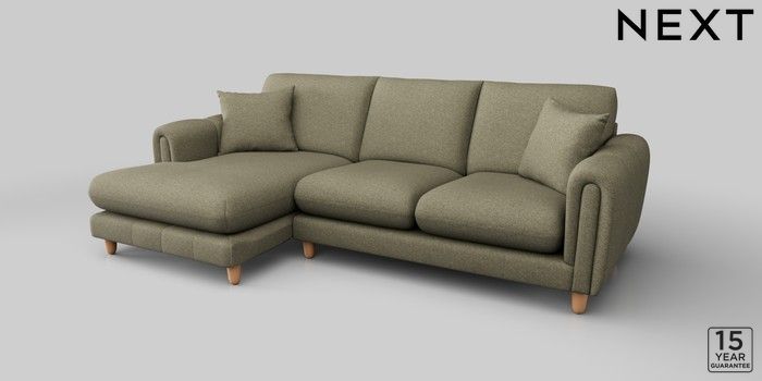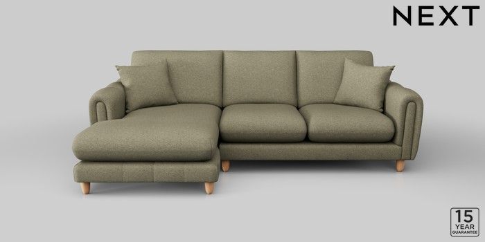 7.2.10 Odella Medium Sofa Chaise - Left Hand Tweedy Chenille Mid Moss Green High Leg - Light | Made Click here to use our website with more accessibility support, for example screen readers