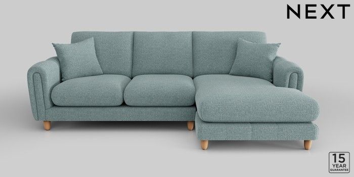7.2.10 Odella Medium Sofa Chaise - Right Hand Chunky Chenille Light Teal Green High Leg - Light | Made Click here to use our website with more accessibility support, for example screen readers