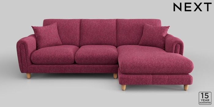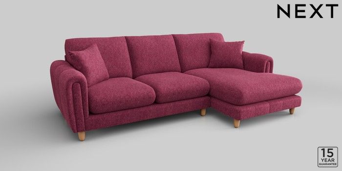 7.2.10 Odella Medium Sofa Chaise - Right Hand Cotswold Chenille Dark Raspberry Pink High Leg - Light | Made Click here to use our website with more accessibility support, for example screen readers